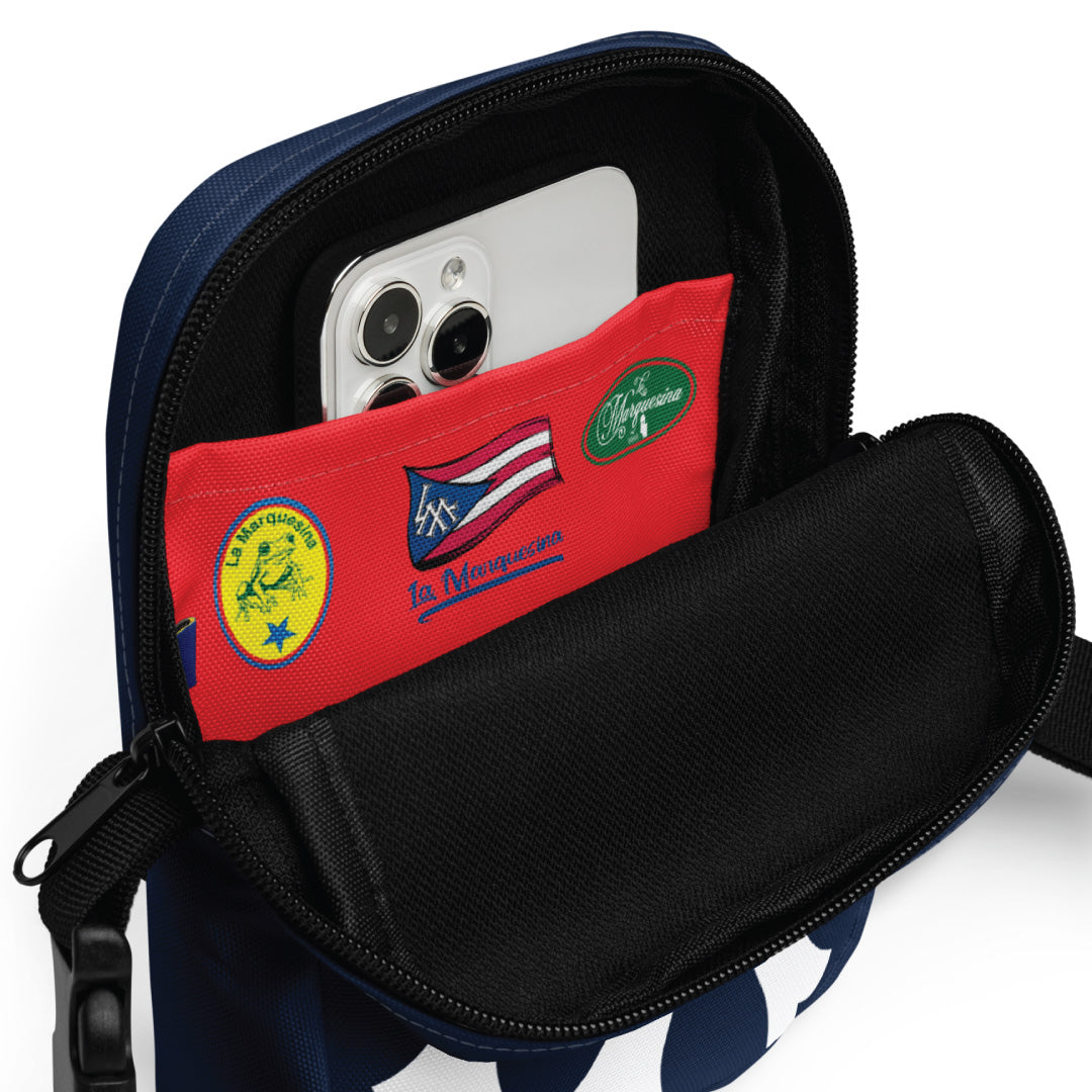 Carry your essentials in style with the La Marquesina Unisex Crossbody Utility Bag. Designed for adventure lovers and city explorers alike, this bag offers handy compartments to keep your items organized and easy to reach with a stamp of Puerto Rican pride. Its sleek, versatile look fits any outfit, making it the perfect playful companion for your everyday hustle. Lightweight yet durable, it's ready to keep up with your dynamic lifestyle wherever you go!